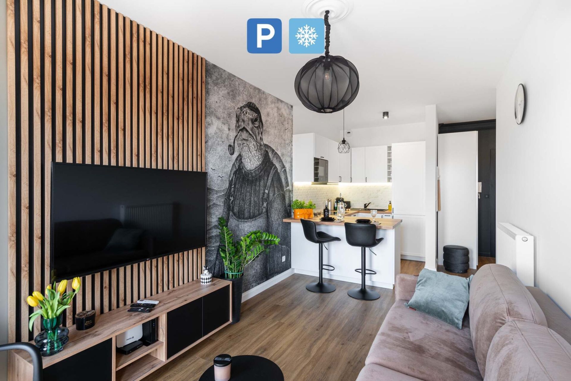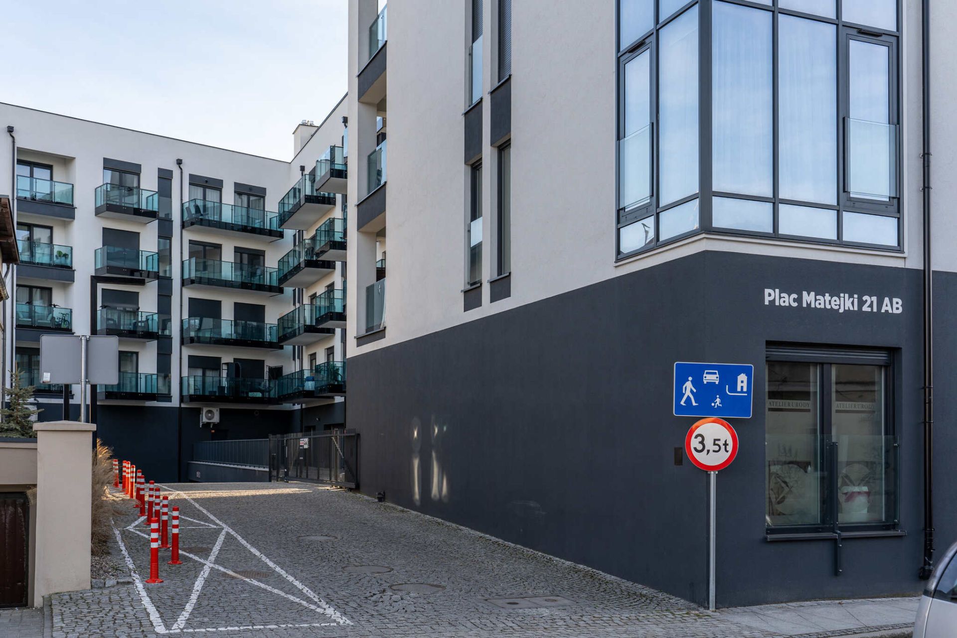 Goście mogą również korzystać z oznaczonego miejsca parkingowego w hali garażowej, skąd windą wygodnie dostaną się bezpośrednio na trzecie piętro, gdzie znajduje się apartament – to gwarancja pełnego komfortu od samego przyjazdu.