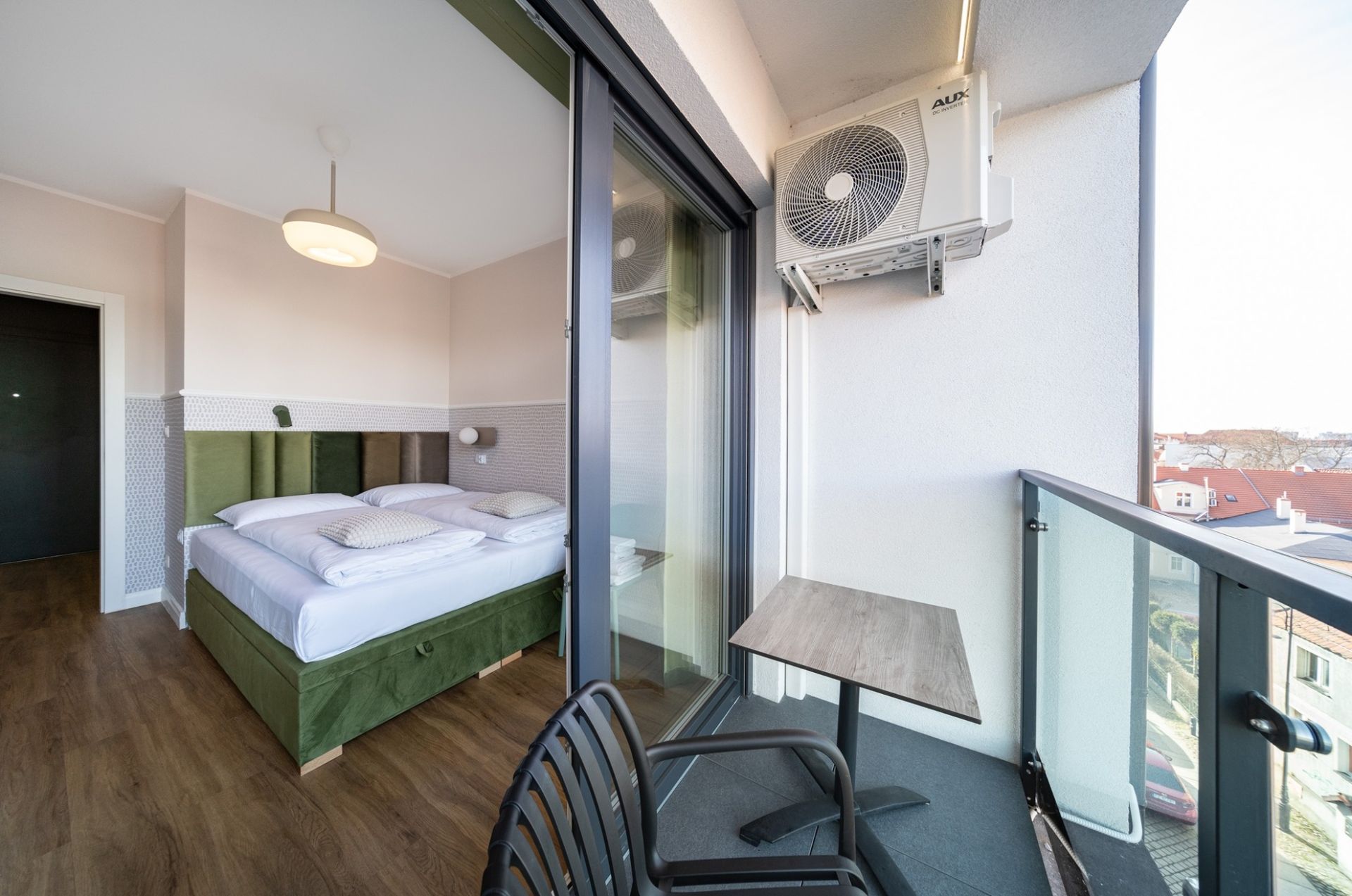 Dodatkowo do apartamentu przynależy balkon z dwoma krzesłami i stolikiem – idealny na poranną kawę lub wieczorny relaks na świeżym powietrzu.