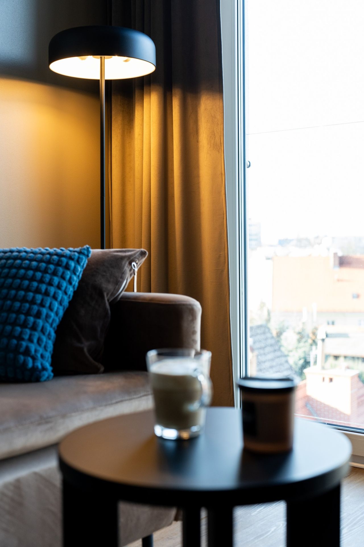 W apartamencie czeka na Ciebie wygodne, hotelowe łóżko z białą, pachnącą pościelą, aromatyczna kawa Lavazza i klasyczna angielska herbata Ahmad. Do dyspozycji gości jest także szybkie Wi-Fi oraz Smart TV.